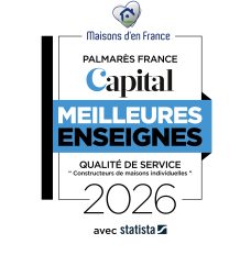 Meilleure Enseigne Qualité de Service dans la catégorie meilleur “constructeur de maisons individuelles”, de 2019 à 2026. Maisons d’en France offre une écoute permanente et un accompagnement global tout au long de votre projet de construction de maison individuelle. Notre service après-vente, organisé et réactif, apporte des solutions dans les meilleurs délais.